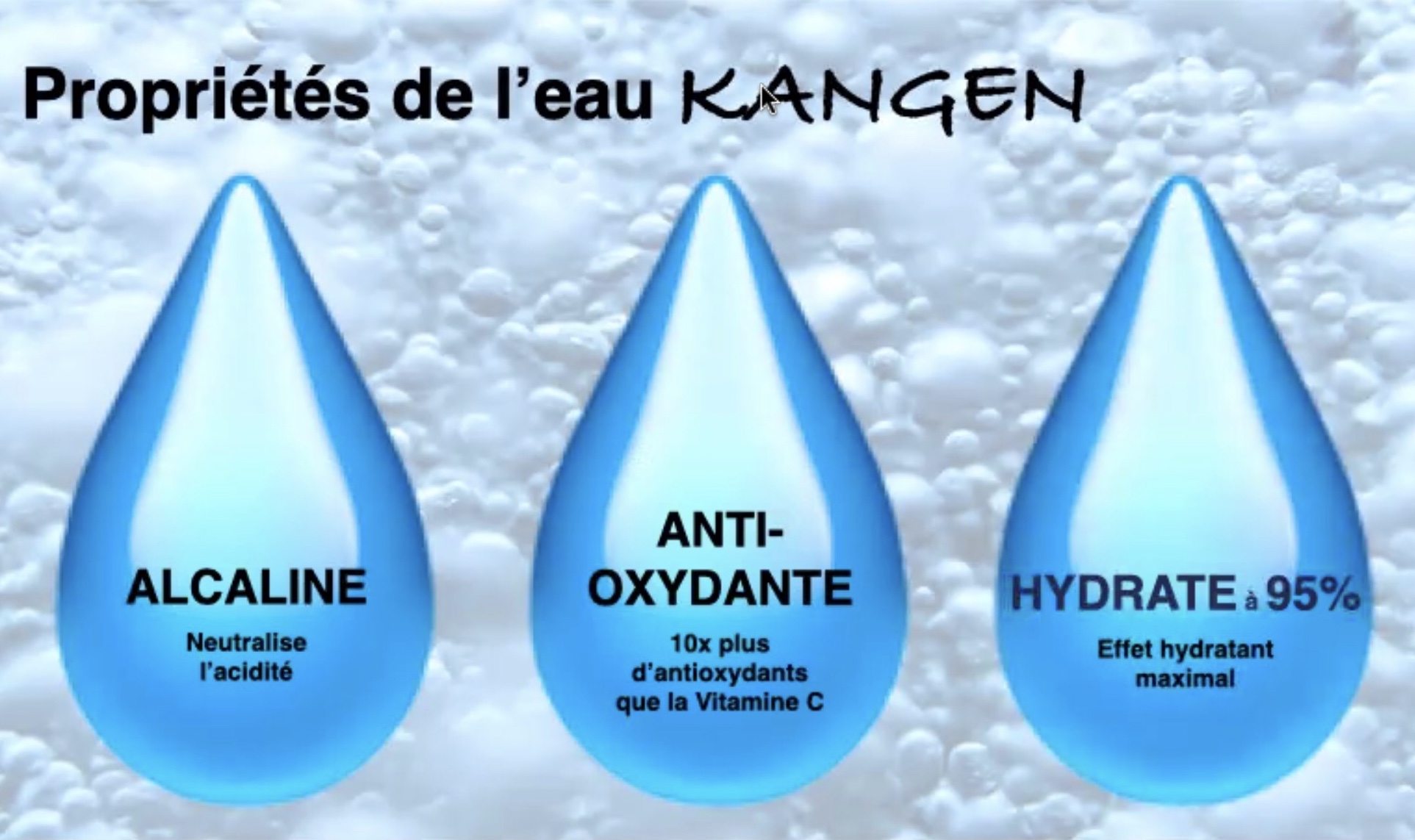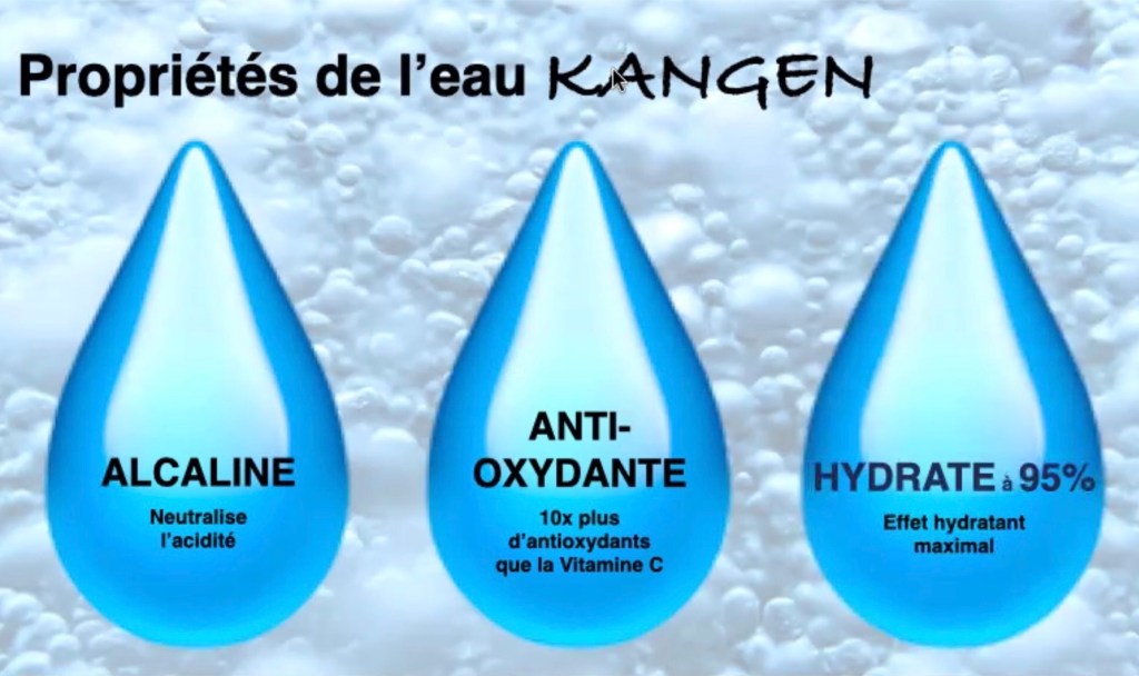 A savoir que l’eau Kangen®️ est ionisée, micromoléculaire et hydrogénée.